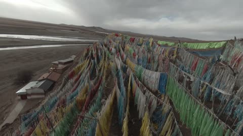 新疆喀纳斯雪地里女生拿着彩烟奔跑